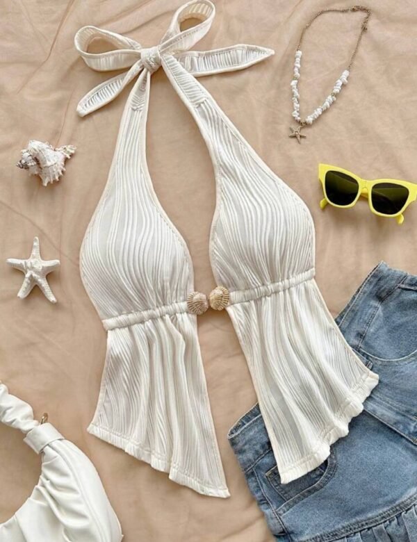 The Shell Clasp Halter Top is here to redefine your wardrobe with its timeless charm and modern design. Perfect for casual outings or evening events, this top brings an effortlessly chic vibe to any look. With a flattering halter neckline and a distinctive shell clasp detail, it stands out as a versatile piece, making you look polished and poised no matter the occasion.